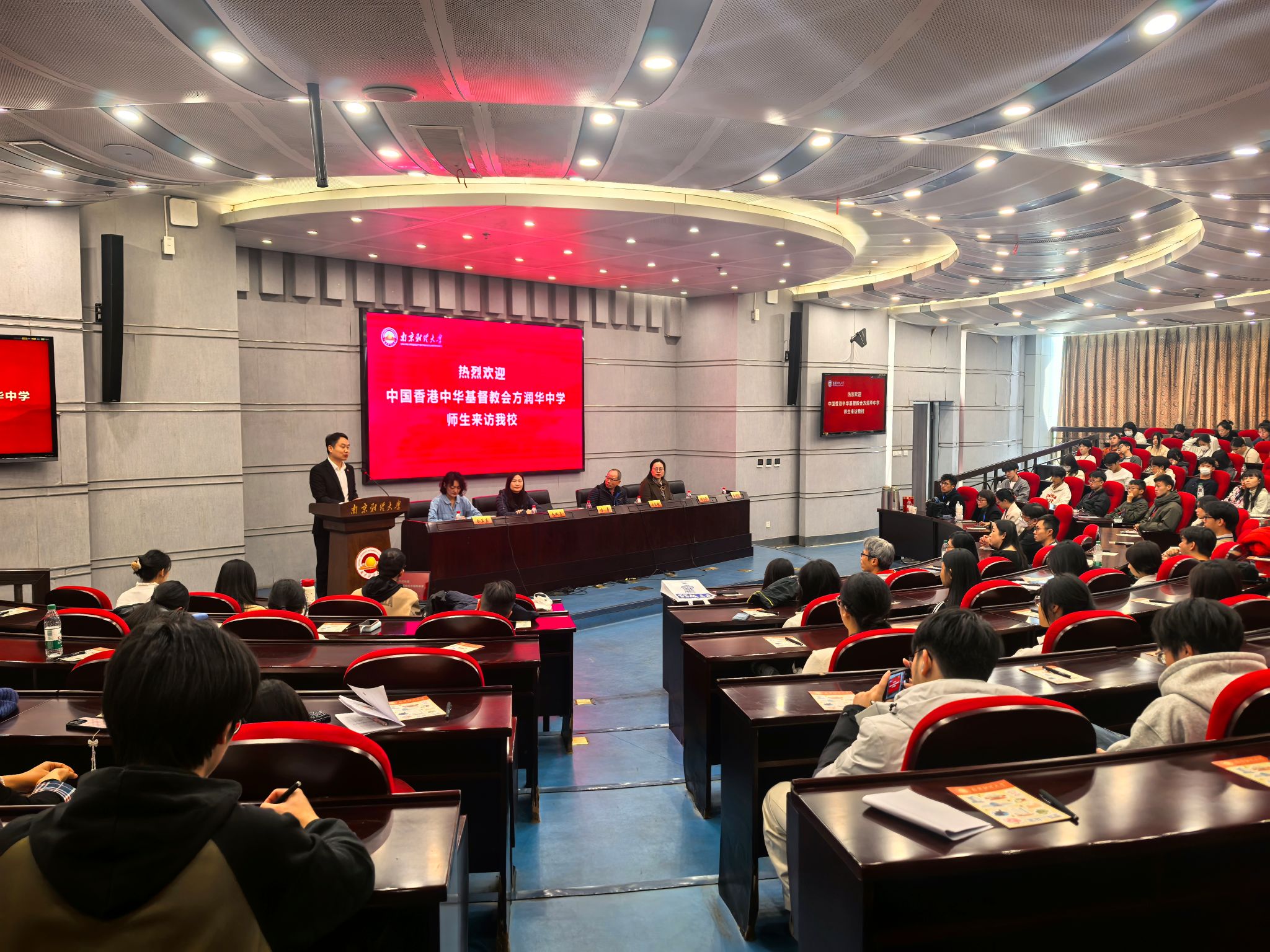 11月24日上午,香港中华基督教会方润华中学师生代表一行120余人来bat365参观访问。bat365在仙林校区行政楼二楼报告厅举行欢迎会。党委常委、副校长方勇,港澳台事务办公室主任杨智华、副主任杨雨晴,学生处招生办公室主任全真真,国际经贸学院副院长李冠艺及bat365香港学生代表参加欢迎会。欢迎会由杨智华主任主持。