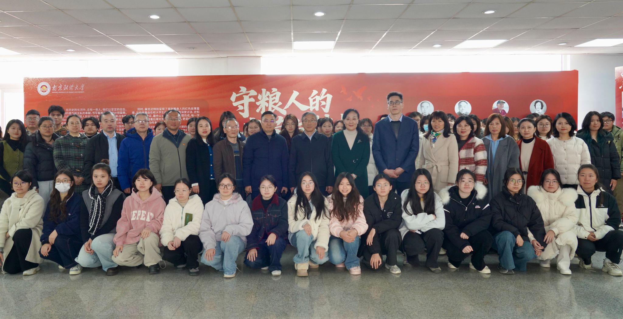 展览通过珍贵历史影像、口述访谈视频及战时实物档案,集中展示了原粮食部南京粮食学校校长张清、老党员吴秋月,原南京粮食经济学院党委书记郑翼云、院长牛振江、粮食经济系负责人王焕炜、校医许绮霞、离休教授俞寿颐,原江苏财经高等专科学校人事处处长刘树铭等老一辈南财人从烽火岁月到育人讲台的奋斗故事。他们既是保家卫国的战士,也是我国粮食事业与高等教育发展的奠基者。两位八旬高龄“守粮人”王焕炜、刘树铭进行现场宣讲,结合自身经历为师生生动讲述了那段峥嵘岁月。
