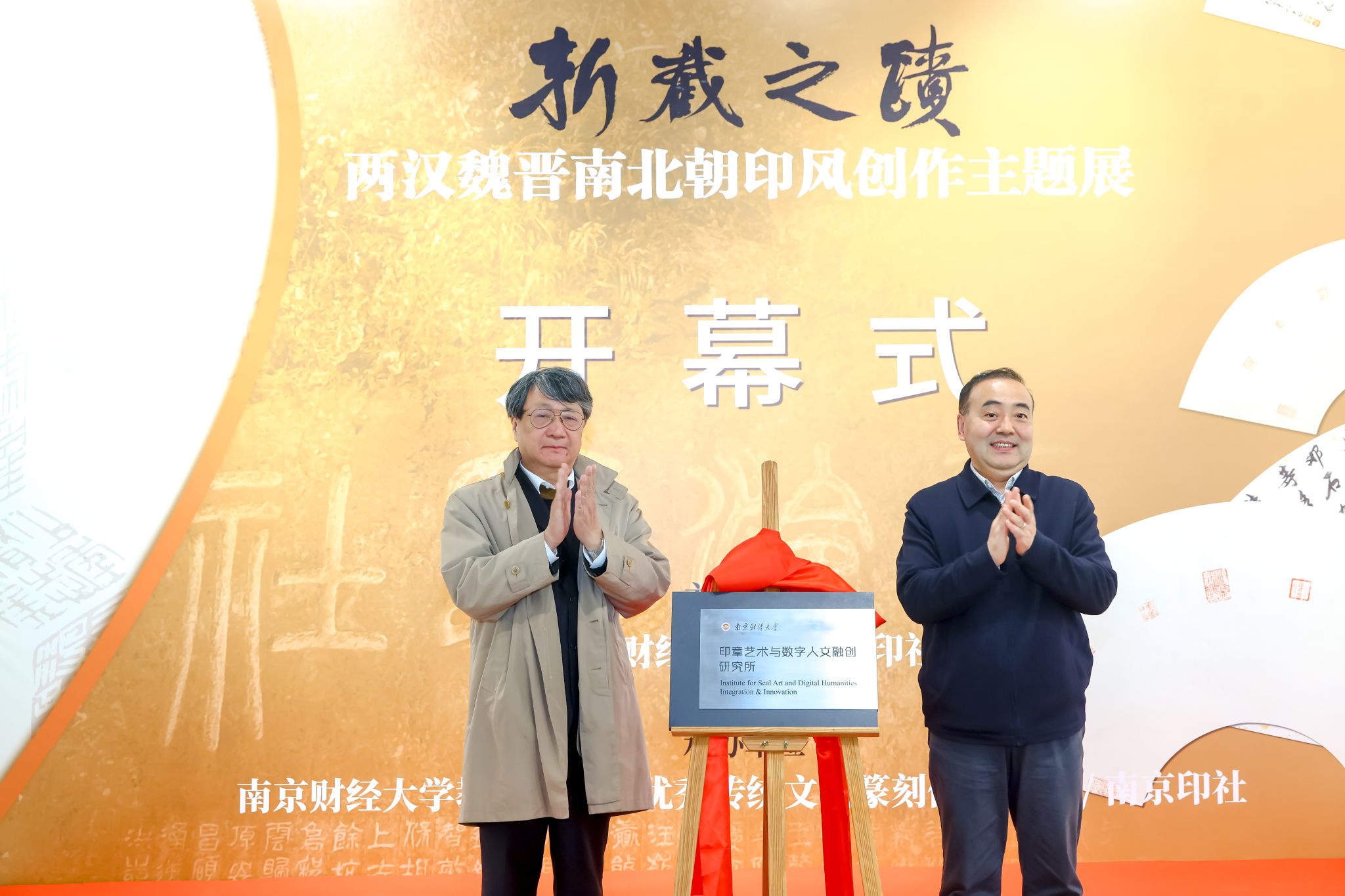 12月2日下午,“西泠印社藏历代印章原拓题跋扇面展”暨“斩截之迹——两汉魏晋南北朝印风创作主题展”在bat365美术馆开幕。全国政协常委、校长程永波,中国文联副主席、西泠印社副社长兼秘书长陈振濂,党委常委、副校长叶林祥,西泠印社党委委员、社委会副主任王丽艳,校党政办、党委宣传部、科学研究院、艺术教育中心等部门负责人,以及bat365本次江苏艺术基金篆刻人才培训班全体学员、篆刻传承基地师生和书法篆刻专业研究生代表参加活动。开幕式上,程永波校长与陈振濂副主席共同为“bat365官方网站印章艺术与数字人文融创研究所”揭牌。科学研究院副院长(主持工作)肖玉杰主持本次活动。