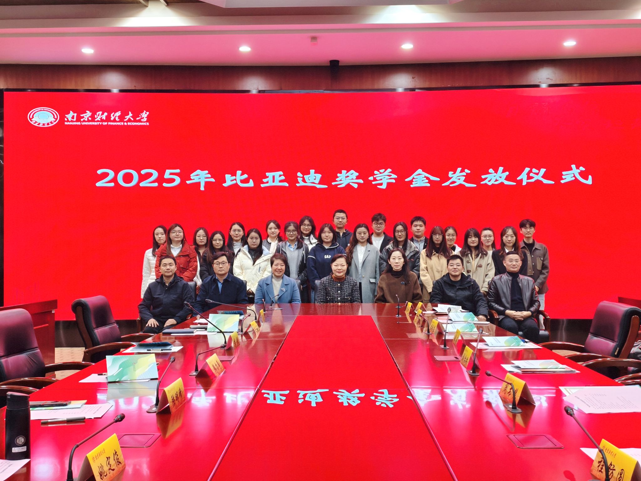 12月8日下午,2025年度“比亚迪奖学金”发放仪式在仙林校区工科楼二楼会议室举行。党委常委、副校长、教育发展基金会理事长李煜出席仪式,党委学生工作部(处)部长韩力争,党委研究生工作部部长郝园园,对外联络处处长陆明峰、副处长裴银伟,国际经贸学院党委副书记周进进,金融学院副院长姚定俊和学生代表参加仪式。仪式由裴银伟副处长主持。