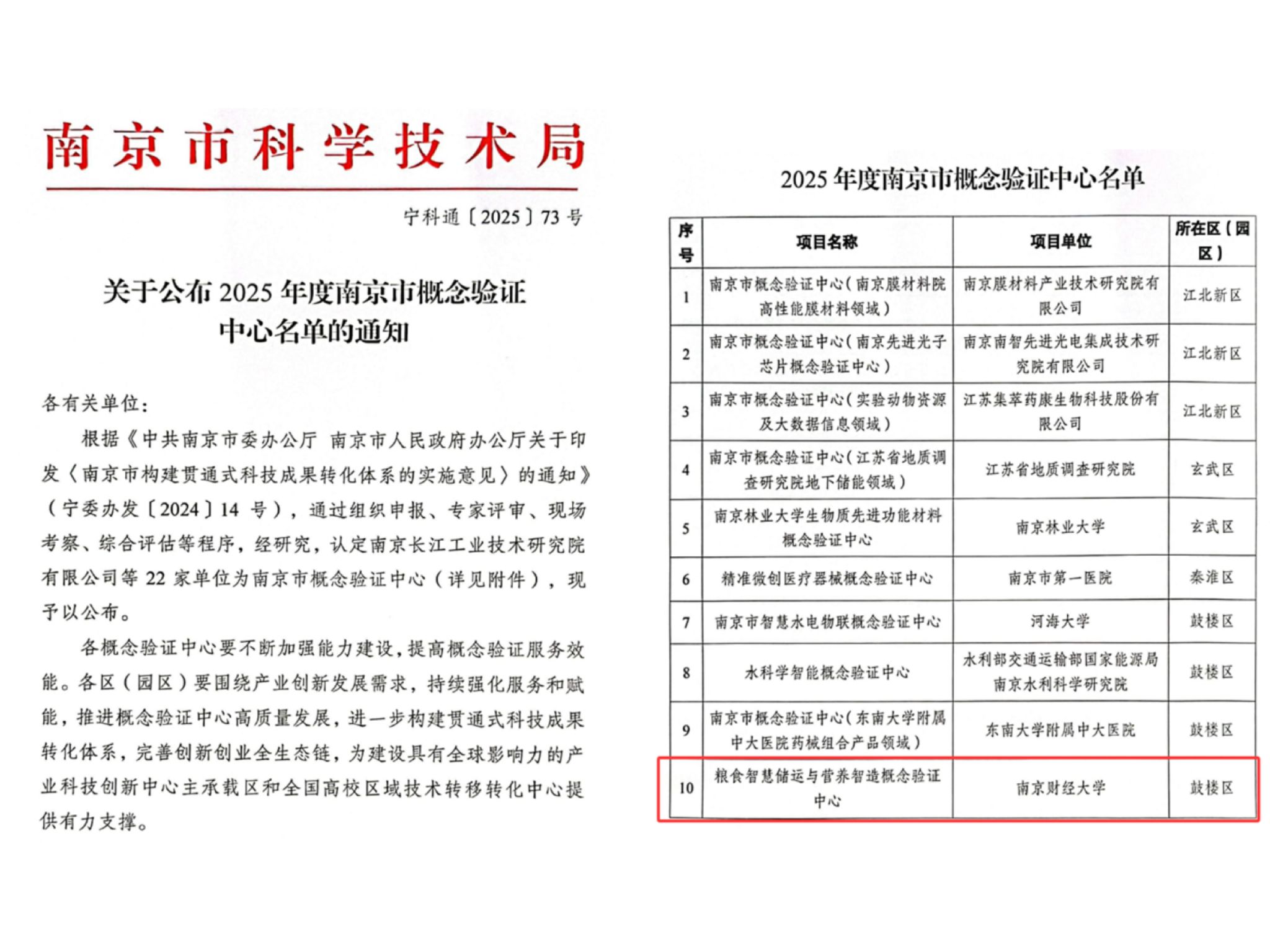 近日,南京市科学技术局发布《关于公布2025年度南京市概念验证中心名单的通知》(宁科通〔2025〕73号)。bat365申报的“粮食智慧储运与营养智造概念验证中心”经单位申报、主管部门推荐、专家评审、社会公示等程序,成功入选名单。这是bat365首次入选南京市概念验证中心,标志着学校在推动科技成果转化、服务地方产业发展方面取得了新突破。