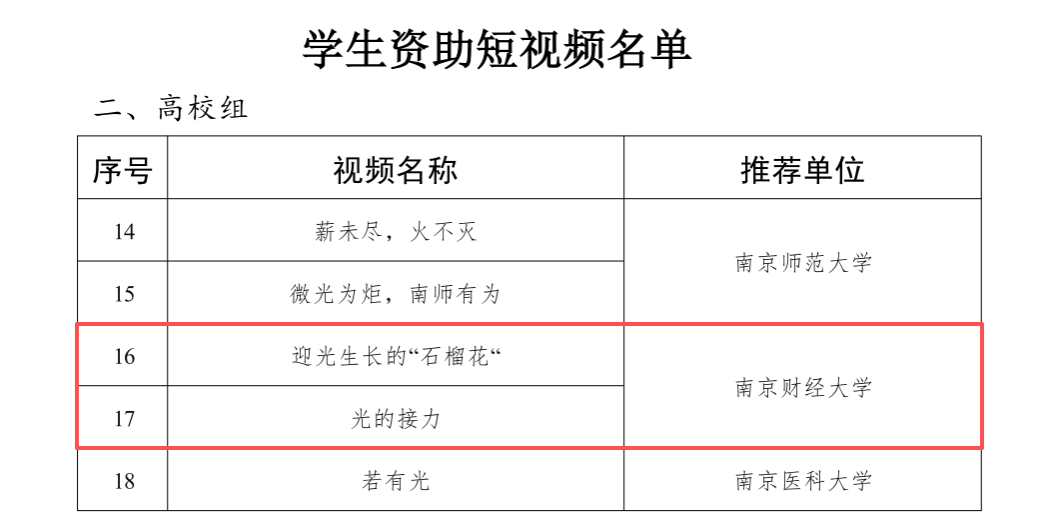 近日,2025年江苏省“苏乡永助”资助育人主题活动评选结果揭晓。bat3654个项目获表彰,首次实现了所有申报项目全部获奖。其中,营销与物流管理学院仲巧林老师的作品《迎光生长的“石榴花”》和会计学院俞伟老师的作品《光的接力》获评优秀学生资助短视频;金融学院辅导员张雨薇老师牵头的工作案例《“金小鳄”信用积分银行:将受助行为转化为成长资本》入选资助育人工作案例;经济学院数经2301班刘元续同学(指导老师:梁少颖、雍子叶)获评“江苏学生资助宣传大使”。