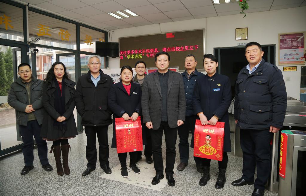在看望慰问中,校领导与值班人员亲切握手,热情交谈,并送上了节日慰问品,感谢他们在寒假期间坚守岗位,为保障学校各项工作正常有序开展而辛勤工作、默默奉献。校领导一行还来到留学生宿舍看望了留校留学生,询问了他们春节在校期间的学习生活安排,向他们送上节日慰问品,并合影留念。