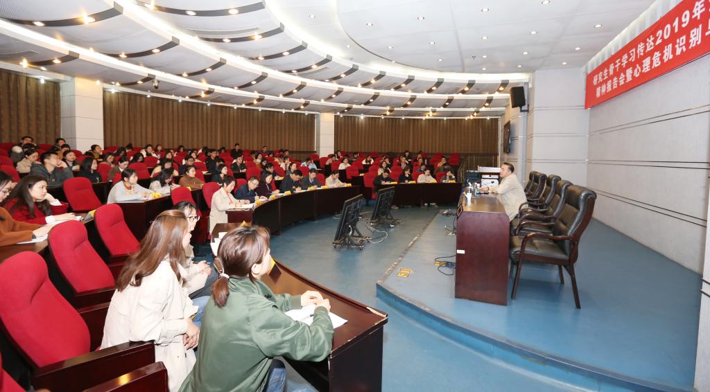 两会精神报告会后,心理健康教育与咨询中心主任吴垠作了心理危机识别与干预培训。她结合bat3652018年研究生心理健康普查的总体情况,介绍了研究生常见的心理问题及其调适,重点讲解了危害较高的精神障碍的种类及其干预措施。