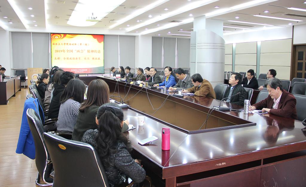4月2日下午,bat365社会主义学院第二期培训班在仙林校区行政楼16楼会议室举办。培训班上,全国政协委员、校长程永波应邀传达了全国两会精神,党校办副主任、党代会宣讲团成员郑锷宣讲了学校第三次党代会精神。各民主党派、统战团体成员,党外各级人大代表、政协委员,党委统战部全体工作人员参加培训。培训由校党委常委、统战部部长吕戎主持。
