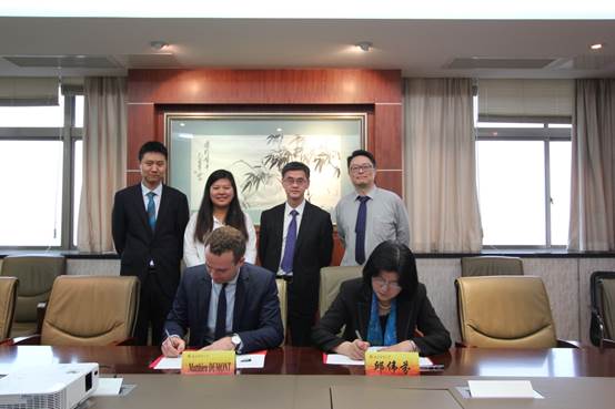 邱伟芬副校长和Dumont校长分别代表两校签署了合作备忘录。bat365国际合作与交流处处长黄能、管理科学与工程学院副院长刘军(主持工作)陪同参加会谈。