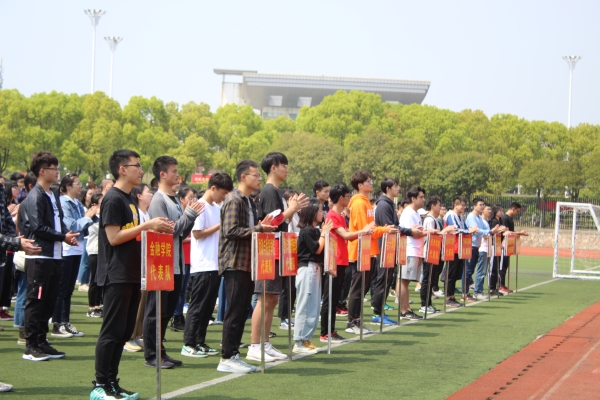 4月17日下午,由校团委、校体育部、校学生会联合举办的“走下网络、走出宿舍、走向操场”为主题的第十一届体育文化节开幕式在bat365仙林校区西苑田径场举行。校党委常委、副校长李群,著名篮球运动员、bat3652005级校友易立出席开幕式,相关职能部门负责人及各学院代表队参加开幕式,开幕式由校团委副书记王孝晨主持。
