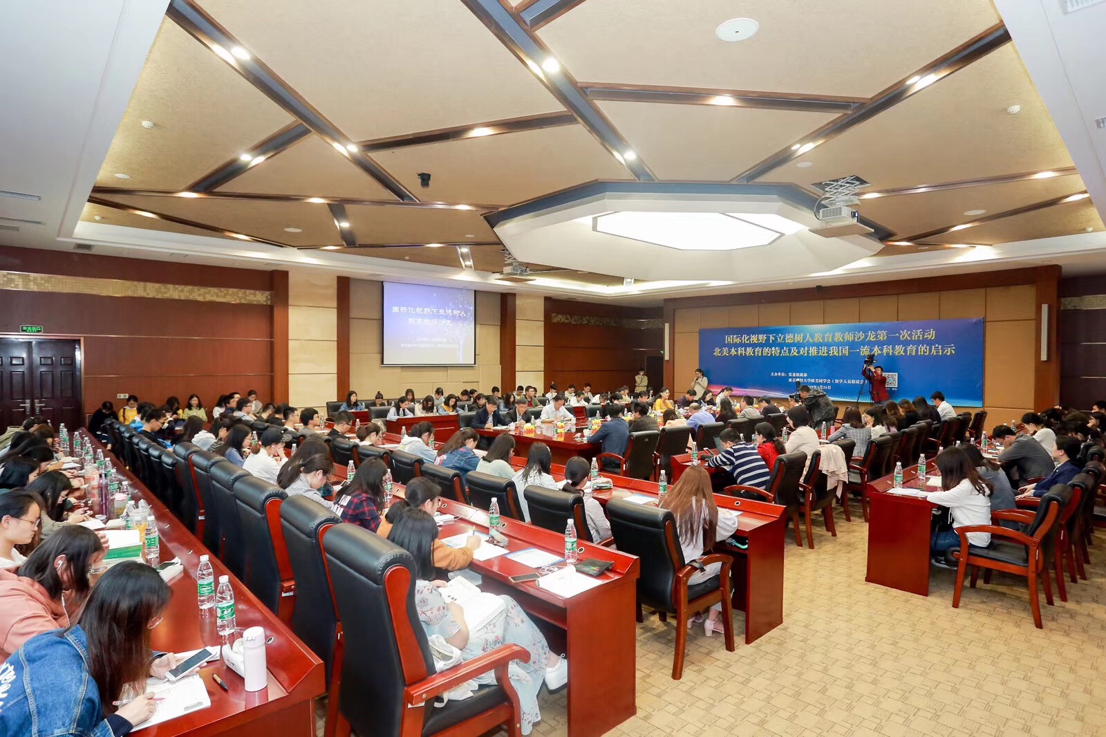 4月25日下午,党委统战部、校欧美同学会(留学人员联谊会)在仙林校区工科楼二楼会议室联合举办了“国际化视野下立德树人教育教师沙龙”。本次沙龙的主题是“北美本科教育的特点及对推进我国一流本科教育的启示”,校党委副书记温潘亚,党委常委、副校长邱伟芬,党委常委、统战部部长吕戎出席沙龙。学生处、研究生院、人事处、教务处、教师(教学)发展中心、科研处、国际合作与交流处、国际教育学院等职能部门负责人,欧美同学会全体会员,党委统战部全体工作人员及部分师生参加了沙龙。沙龙由校欧美同学会会长、教务处处长叶林祥主持。