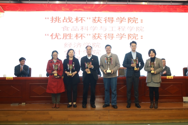 第九届“挑战杯”bat365官方网站大学生课外学术科技作品竞赛“挑战杯”“优胜杯”获得学院代表上台领奖