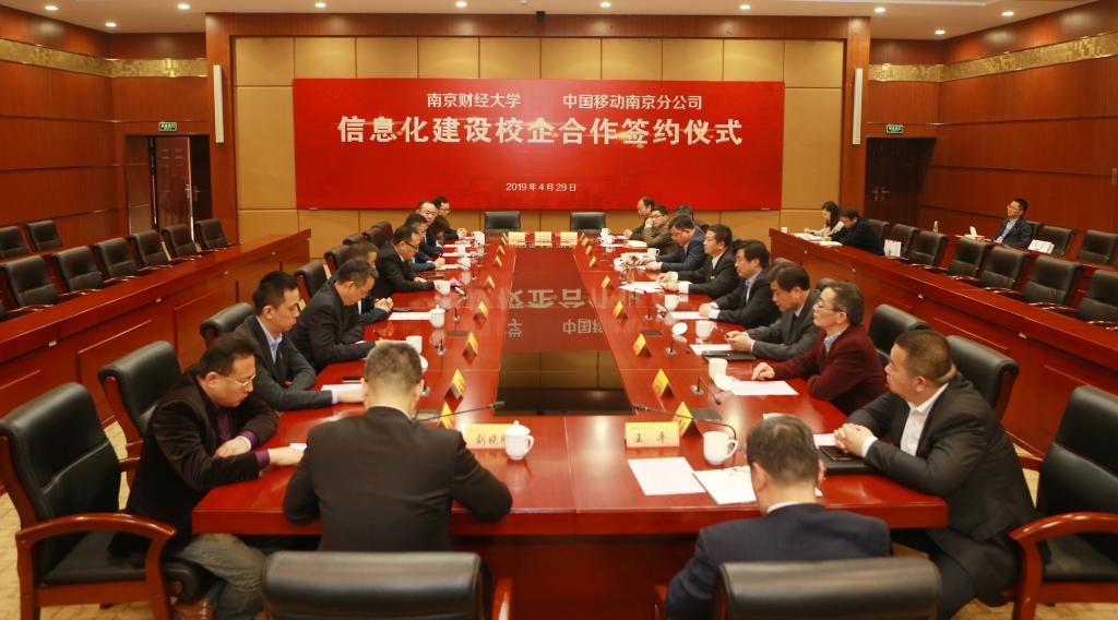 张利民强调,此次校企合作协议的签署,是双方深入贯彻落实全国网络安全和信息化工作会议精神,协同推进教育信息化建设的重要举措,是学校实施“开放”战略、深化高校与企业之间合作、提高智慧校园建设与管理水平的具体体现,更是中国移动南京分公司全方位支持高等教育事业发展的实际行动,必将开启bat365官方网站与中国移动南京分公司长期友好合作的新篇章。张利民表示,借助中国移动的优势,大力改善校园网络环境,一定能为学校人才培养、教学科研提供更高质量的支撑,为广大师生学习生活提供更高水平的服务,为特色鲜明高水平财经大学建设打下更为坚实的基础。他也希望,双方能以本次校企合作为契机,充分利用双方资源优势,进一步拓展合作空间和内容,在人才培养、就业创业、产学研合作、5G业务拓展等诸多领域加强深层次合作,建立起长效的合作机制,携手共创更加美好的未来。