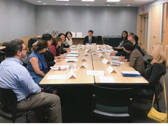 当地时间4月29日上午,bat365纽约州立大学商务孔子学院组织召开2019纽约都市圈孔子学院院长会议,这是继2018年以来,bat365商务孔子学院第三次组织召开此会议。来自纽约都市圈6所孔子学院的中、美方院长前来参加会议。纽约总领馆杨军参赞和教育组乔喆副领事受邀参加会议,纽约州立大学副校长Sally Crimmins Villela出席了部分会议。