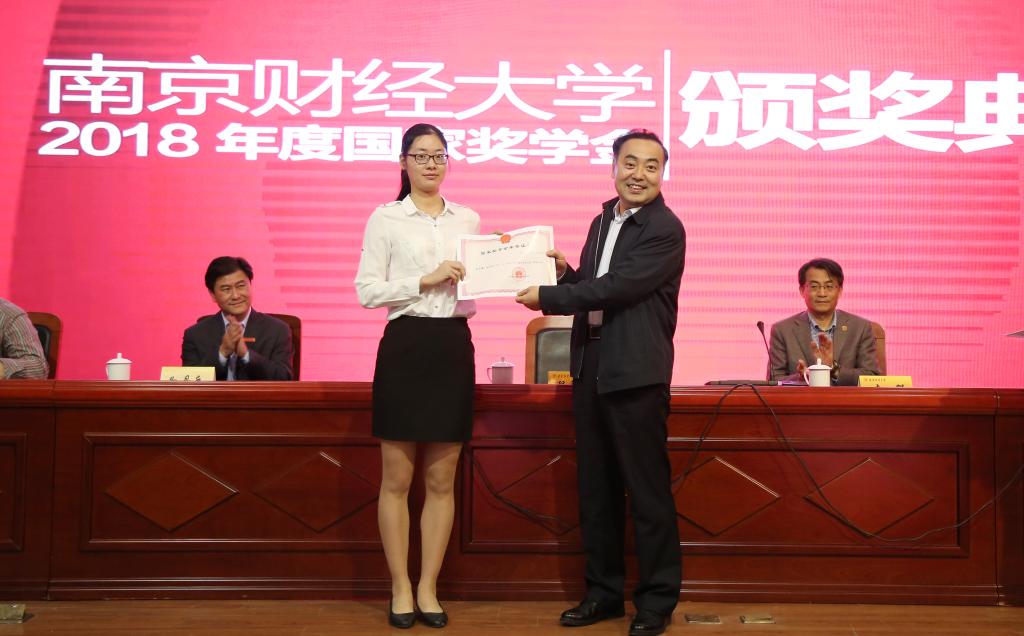 校长程永波为获得2018年度国家奖学金的优秀学子颁发获奖证书