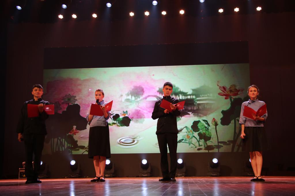晚会以“一带丝路情缘,一路‘财’行高远”为主题,来自俄罗斯、哈萨克斯坦、韩国、泰国、印度尼西亚、老挝等“一带一路”沿线国家的近100名来华留学生参与了演出。晚会在大合唱《我爱你中国》中拉开序幕。参加大合唱的中文预科班留学生上学期才来到中国,在短短数月间领略到中国发展取得的巨大成就,不约而同地用歌声表达对中国的热爱;即将步入毕业班的工商管理专业和国际经贸专业的四位哈萨克斯坦留学生,用流利的中文深情地朗诵《中国在我心中》,表达对中国的依依不舍之情;印度尼西亚留学生卜琪美演唱了经典歌曲《绒花》,歌声悠扬深情,为现场观众呈现了一场听觉盛宴;来自俄罗斯、泰国、哈萨克斯坦等国家的12名留学生们表演了旗袍秀《女儿情》,她们仪态典雅清丽,将中华古典之美展现得淋漓尽致。晚会在歌曲联唱《歌唱祖国》中落下帷幕,体现了和谐共处、共同成长的校园国际化氛围。