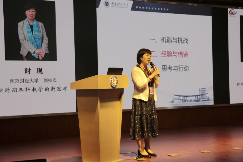 时现副校长演讲的主题是“新时期财经类本科教学工作的新思考”。她指出,为贯彻习近平新时代中国特色社会主义思想和党的十九大精神,落实立德树人根本任务,将“新思想、新理念”融入教育改革,是当今教育服务国家工作大局,展现新作为,开创新局面的迫切要求。财经高校要努力形成与我国综合国力、大国地位基本匹配的全方位、多层次、宽领域的总体教育格局,要以更高远的历史站位、更宽广的战略视野,主动担当,有所作为。她阐述了目前本科教学的现状,分析了本科教育面临的挑战,总结了bat365官方网站在面对新挑战所进行的思考与行动:一是加强顶层设计,以战略思维引领本科教育向高水平发展;二是以本为本,突出目标导向,落实教育教学改革出成果见成效;三是要不断强化师资力量,加强教学团队建设,形成强大的本科教学软实力;四是不断深化国际化办学体制机制改革,努力培养厚基础,强能力、具有社会责任感和国际视野的复合型人才。