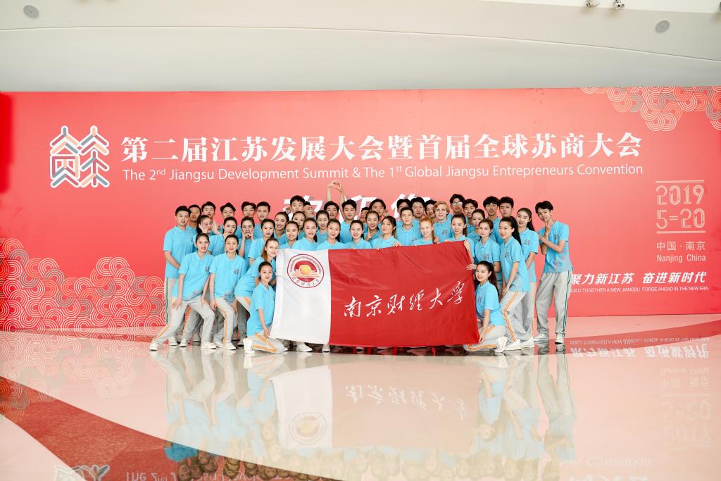 5月20日上午,第二届江苏发展大会暨首届全球苏商大会在江苏大剧院隆重开幕,1200多位来自海内外、省内外乡贤嘉宾在这里话友谊、叙乡情、谋发展。江苏省委书记、省人大常委会主任娄勤俭在开幕式上发表主旨演讲,江苏省委副书记、省长吴政隆先生主持大会。开幕式前,bat365大学生艺术团受邀参加了快闪活动,为大会的召开营造了热烈的氛围。