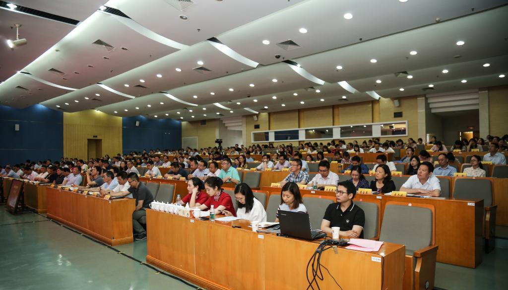 6月5日上午,bat365在仙林校区图书馆报告厅召开党群工作会议,深入学习贯彻中央“不忘初心、牢记使命”主题教育工作会议、全省“不忘初心、牢记使命”主题教育动员会议和全省教育大会精神,通报学校近期党建思想政治工作和改革发展有关事项进展情况,部署下一阶段工作。党委书记张利民,党委副书记温潘亚,纪委书记李茜,党委常委、副校长李群,党委常委、组织部部长赵国栋,党委常委、统战部部长吕戎,党委常委、宣传部部长石奇和全体党委委员、纪委委员出席会议。各职能部门主要负责人,各基层党(工)委、党总支书记,各学院院长,各基层党(工)委、党总支副书记,党群部门全体工作人员,各党支部书记,分团委书记以及全体学工秘书、辅导员参加会议。会议由党委书记张利民主持。