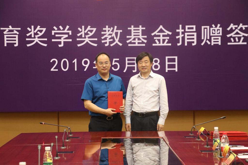 最后,卜金涛处长、倪明院长和蒋望董事长共同签署捐赠协议,黄建元总会计师代表学校向蒋望董事长颁发了捐赠证书。