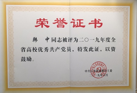 经济学院韩中同志获“江苏省高校优秀共产党员”
