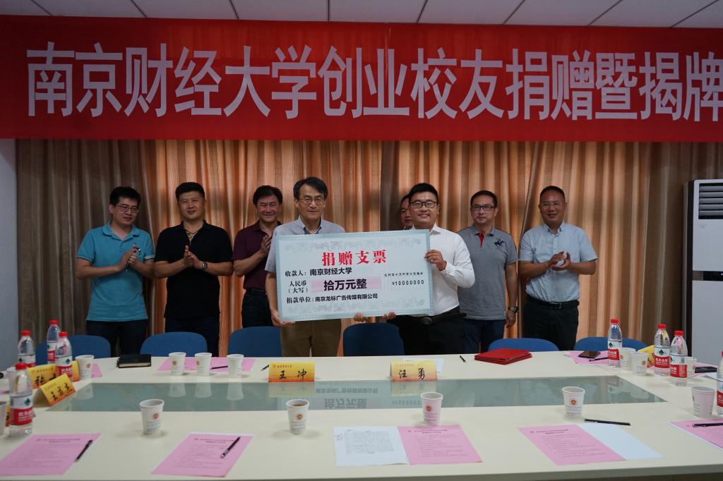 7月4日,艺术设计学院2014级校友、南京龙标广告传媒有限公司总经理汪勇捐资10万元设立“创新创业基金”并赠送“创新创业”纪念石一块,捐设仪式在仙林校区大学生创新创业园一楼会议室举行。党委常委、副校长李群出席并讲话,相关单位负责人、教师代表、学生代表参加仪式。