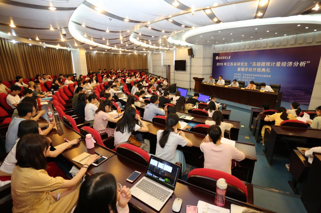 7月7日上午,由江苏省经济类研究生教指委主办、bat365官方网站承办的2019年江苏省研究生“高级微观计量经济分析”暑期学校开班仪式在bat365仙林校区行政楼报告厅举行。江苏省经济类研究生教指委主任委员、bat365副校长华仁海出席开班典礼并讲话。校党委研究生工作部部长韩力争,研究生院院长殷华方,经济学院院长朱红根,江苏省经济类研究生教指委秘书长、经济学院副院长张成以及经济学院部分领导、暑期学校相关教师与来自国内42所知名院校的114名研究生学员共同参加了开班仪式。开班仪式由朱红根院长主持。