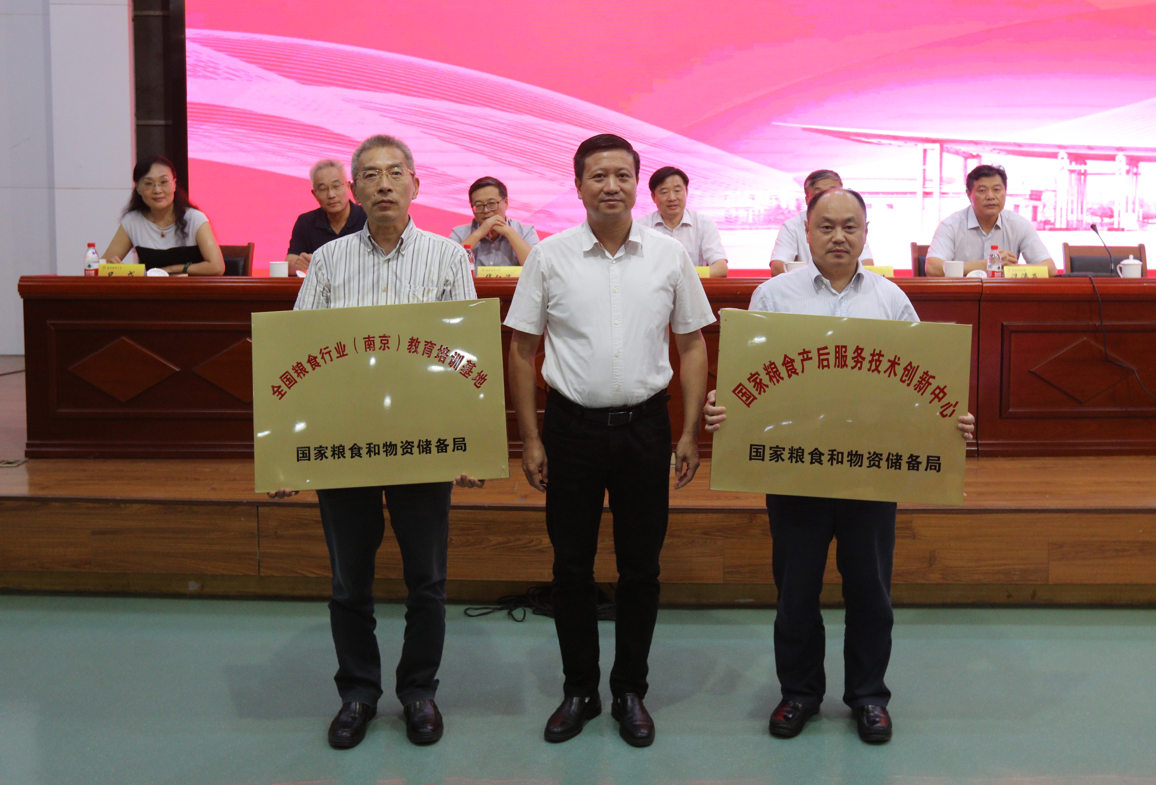 会上举行了“国家粮食产后服务技术创新中心”“全国粮食行业(南京)教育培训基地”“国家小型微型企业创业创新示范基地”“江苏省绿色食品研究基地”揭牌仪式。