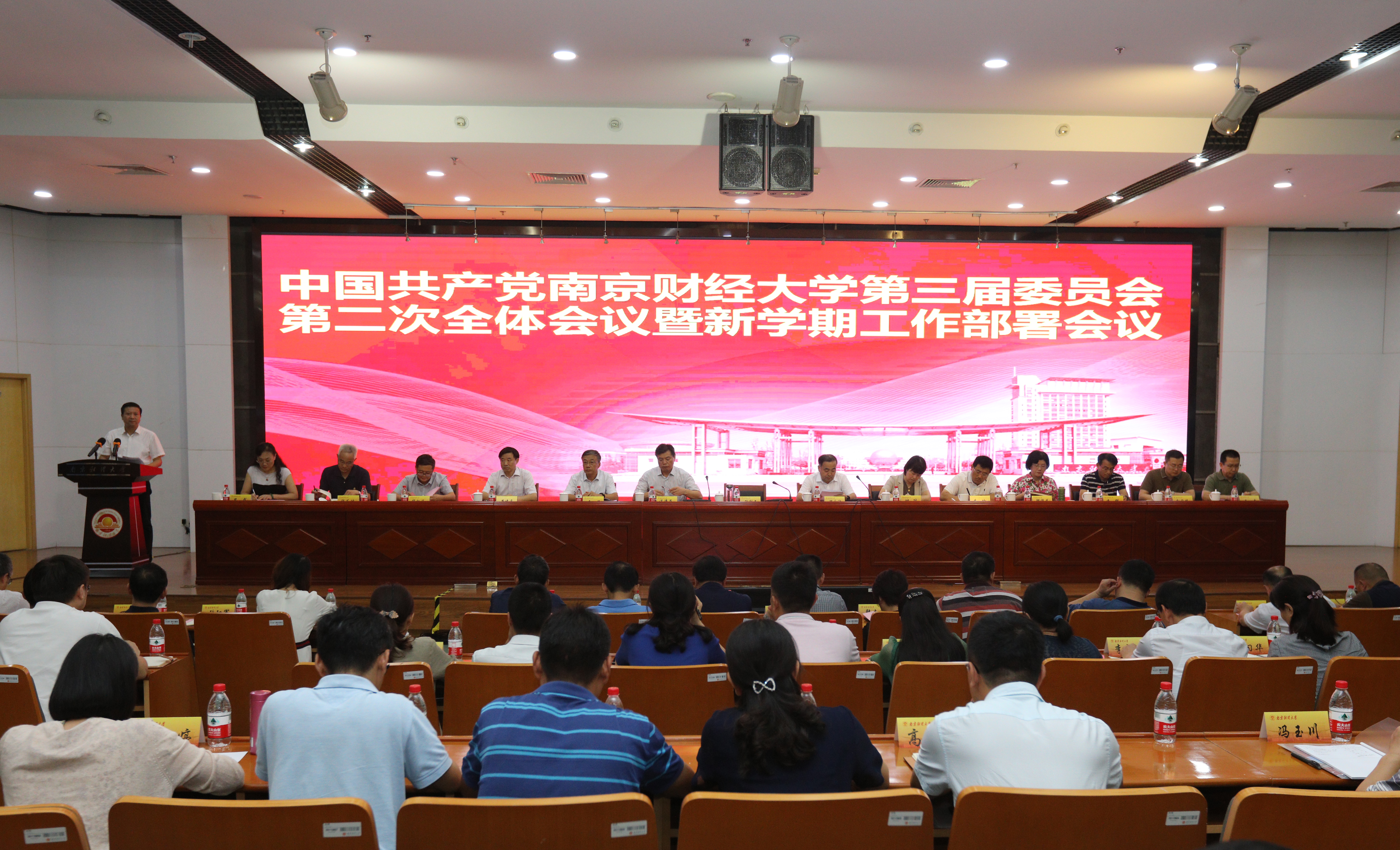 8月31日下午,中国共产党bat365官方网站第三届委员会第二次全体会议暨新学期工作部署会议在仙林校区图书馆报告厅召开。会议以习近平新时代中国特色社会主义思想为指导,贯彻全国全省教育大会精神,落实省委省政府决策部署和学校第三次党代会精神,总结上半年工作,部署下半年任务,动员全校师生员工更加自觉守初心担使命,更加扎实推动高质量发展,奋力谱写特色鲜明高水平财经大学建设的新篇章。全体校领导、党委委员、纪委委员,全体中层干部,各民主党派、统战团体负责人,各级人大代表、政协委员,教代会执委会全体委员,全体教授参加会议。会议由校党委书记张利民主持。