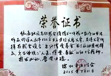 仇高驰教授长期以来热心公益事业,2015年于徐州市立美术馆义捐义展60余幅书法扛鼎之作,并将130余万元所得款倾囊捐赠徐州市红十字会,设立“仇高驰博爱基金”,以此善款用于助残、助学、助困等民生事业。