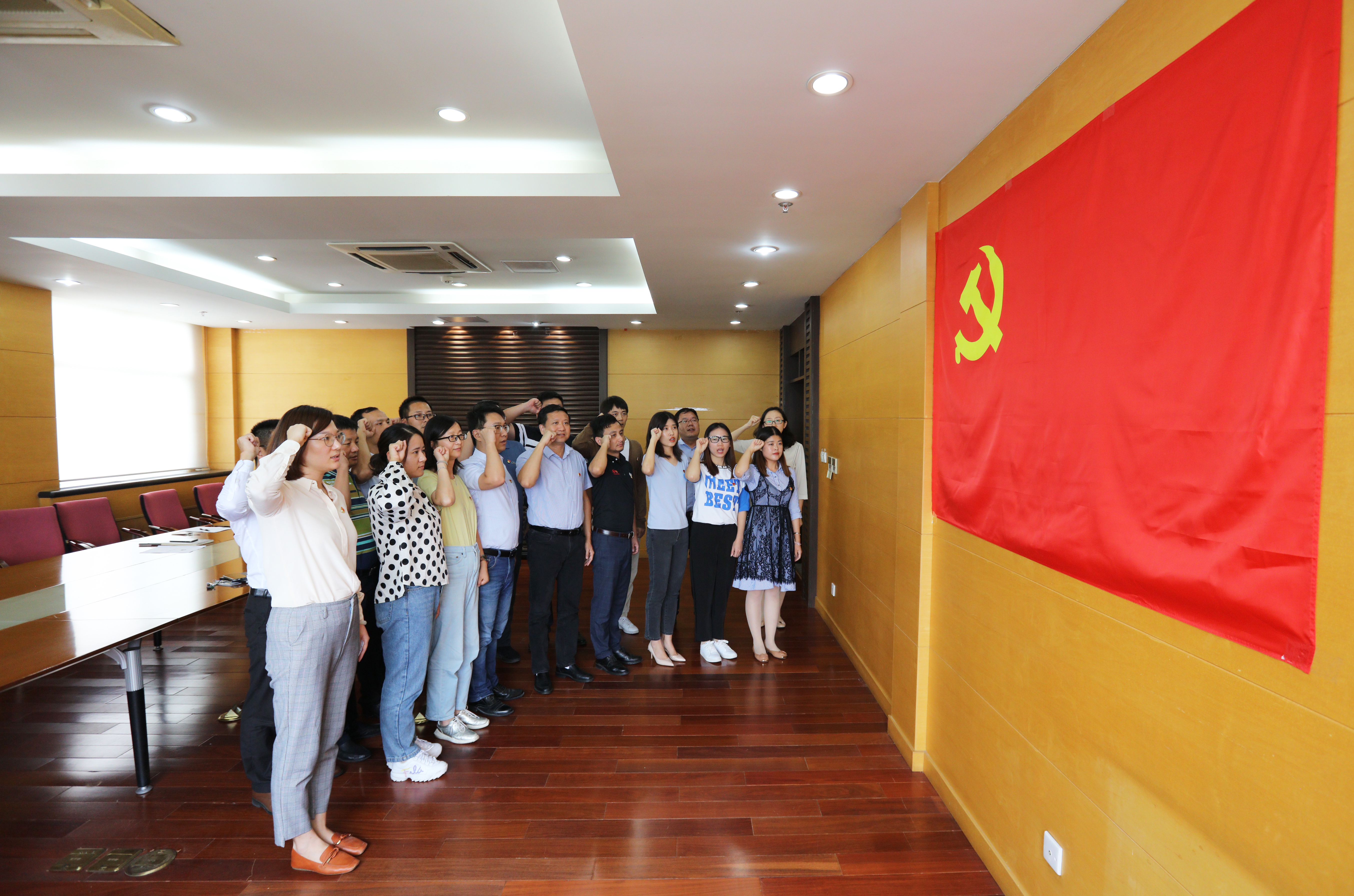 最后,张利民书记同党校办党支部全体党员一道向党旗庄严宣誓,对党忠诚,为共产主义奋斗终身。