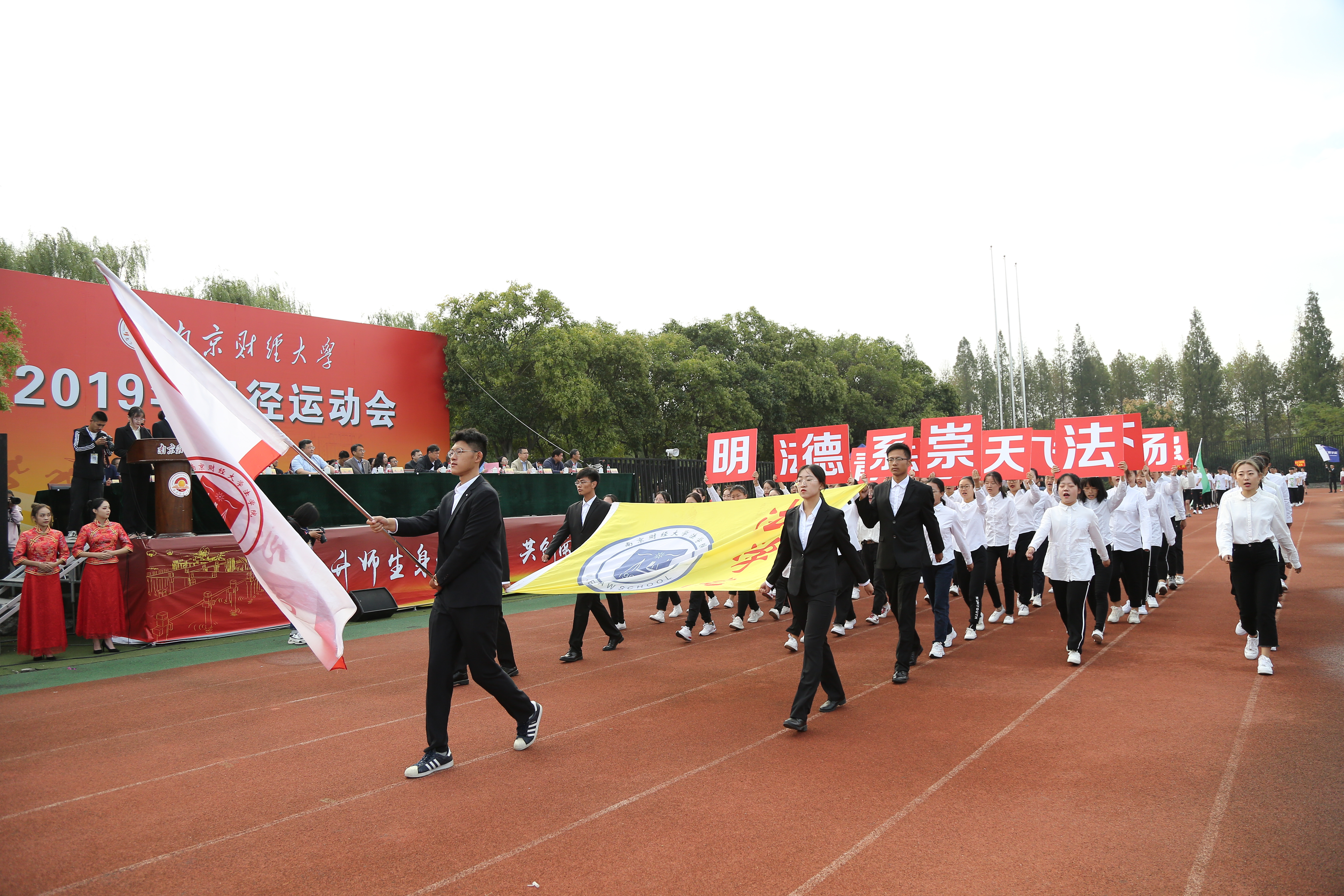 拼搏向上,斗志激昂,运动场上切磋较量;青春无畏,英姿勃发,飒爽金秋登天揽月。10月17日上午,bat3652019年田径运动会在仙林校区西苑田径场开幕。校党委副书记温潘亚,副校长时现、李群,校党委常委、宣传部部长石奇出席开幕式,各职能部门、各学院负责人与全体运动员一同参加了开幕式。开幕式由副校长李群主持。