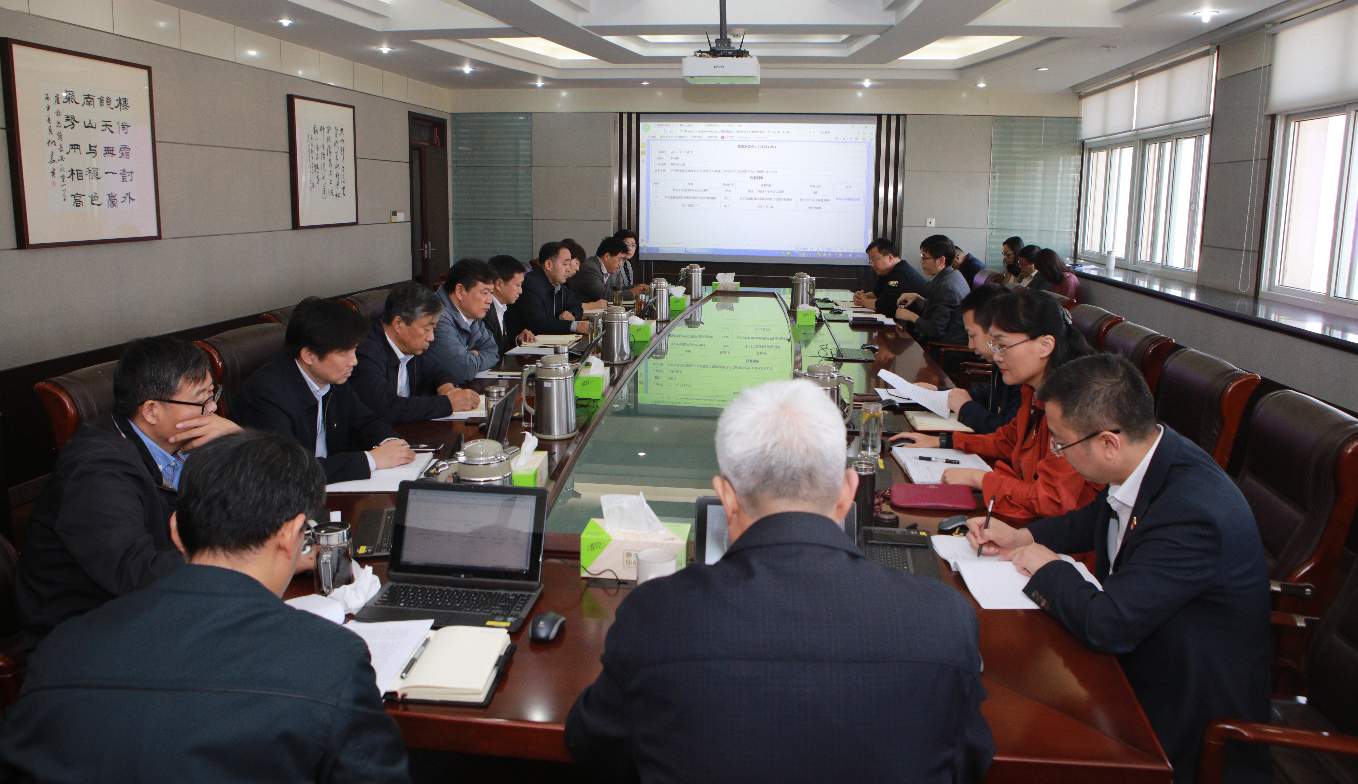 11月8日上午,bat365在仙林校区行政楼1009会议室召开党委理论学习中心组学习会议,传达学习贯彻党的十九届四中全会精神。全体在宁校领导出席会议,全体党委中心组成员参加学习。会议由校党委书记张利民主持。