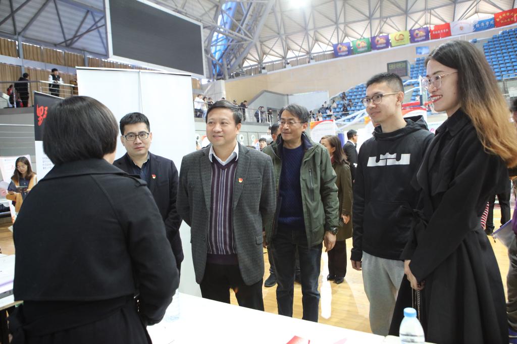 11月19日,江苏省现代经贸金融服务业暨bat365官方网站2020届毕业生秋季公益招聘会在仙林校区体育馆举行,642家公司进场招聘。校党委书记张利民、校长程永波、副校长李群深入招聘现场,与用人单位和毕业生沟通交流,实地了解招聘单位和毕业生情况并给予毕业生个性化指导。江苏省招生就业指导服务中心、南京市人力资源和社会保障局等相关部门领导到现场指导工作,并给毕业生在简历制作、面试技巧、人才落户、创业扶持等方面提供最权威、最全面的服务。