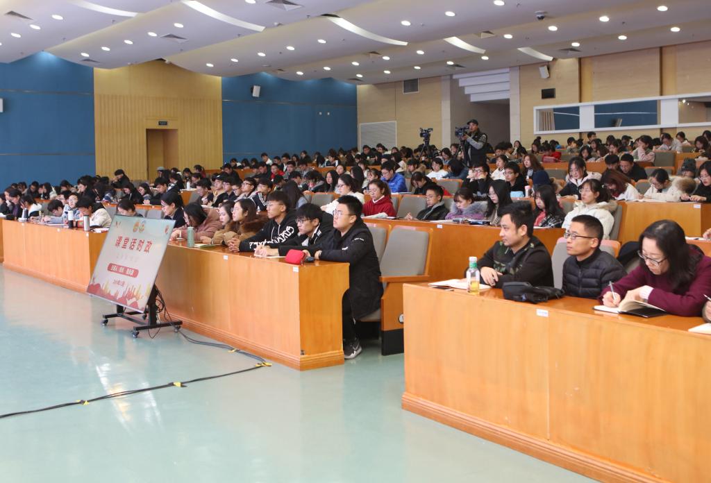 12月11日晚,校长程永波在仙林校区图书馆报告厅讲授主题为“课堂话时政之全国‘两会’”的公开课。各学院2019级300余名本科新生听课。