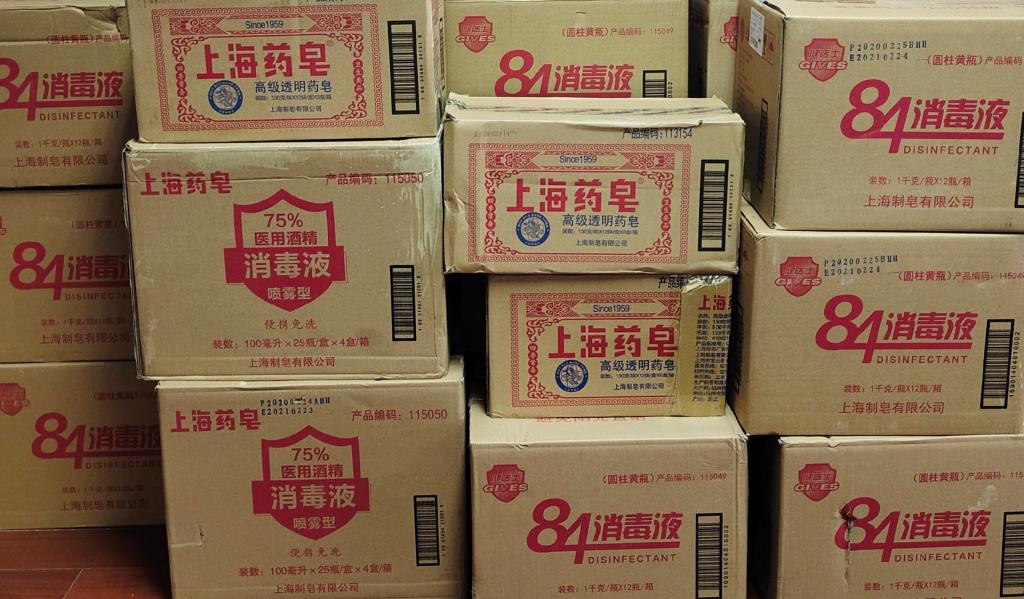 江苏省绿色食品协会向学校捐赠84消毒液、75%医用酒精消毒液、上海药皂