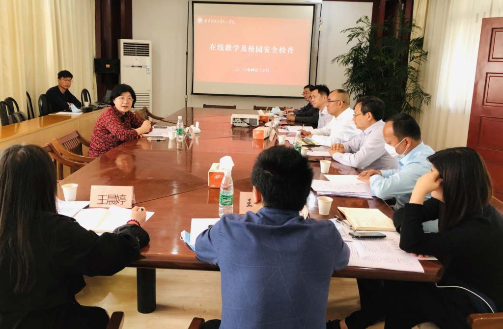 鞠明富书记汇报了校园安全保障工作情况。他表示,学院认真贯彻落实上级疫情防控相关指示,严格校园管控措施,切实保障校园安全,加大后勤保障力度,为学生返校做好准备,高度关注2020届毕业生工作,采取各种措施,确保毕业生顺利毕业就业。