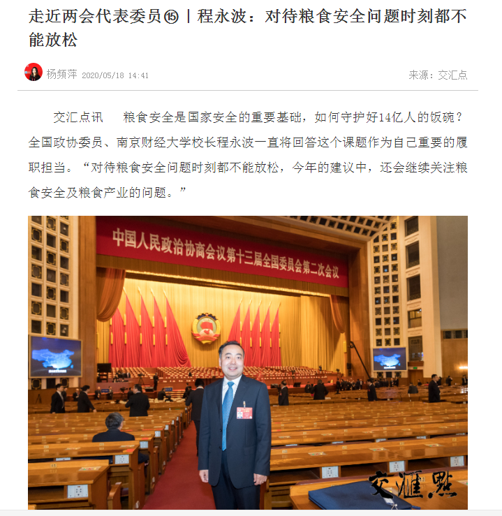 交汇点讯 粮食安全是国家安全的重要基础,如何守护好14亿人的饭碗?全国政协委员、bat365官方网站校长程永波一直将回答这个课题作为自己重要的履职担当。“对待粮食安全问题时刻都不能放松,今年的建议中,还会继续关注粮食安全及粮食产业的问题。”