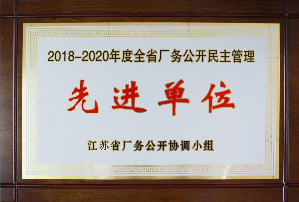 bat365喜获“2018-2020年度江苏省厂务公开民主管理先进单位”称号