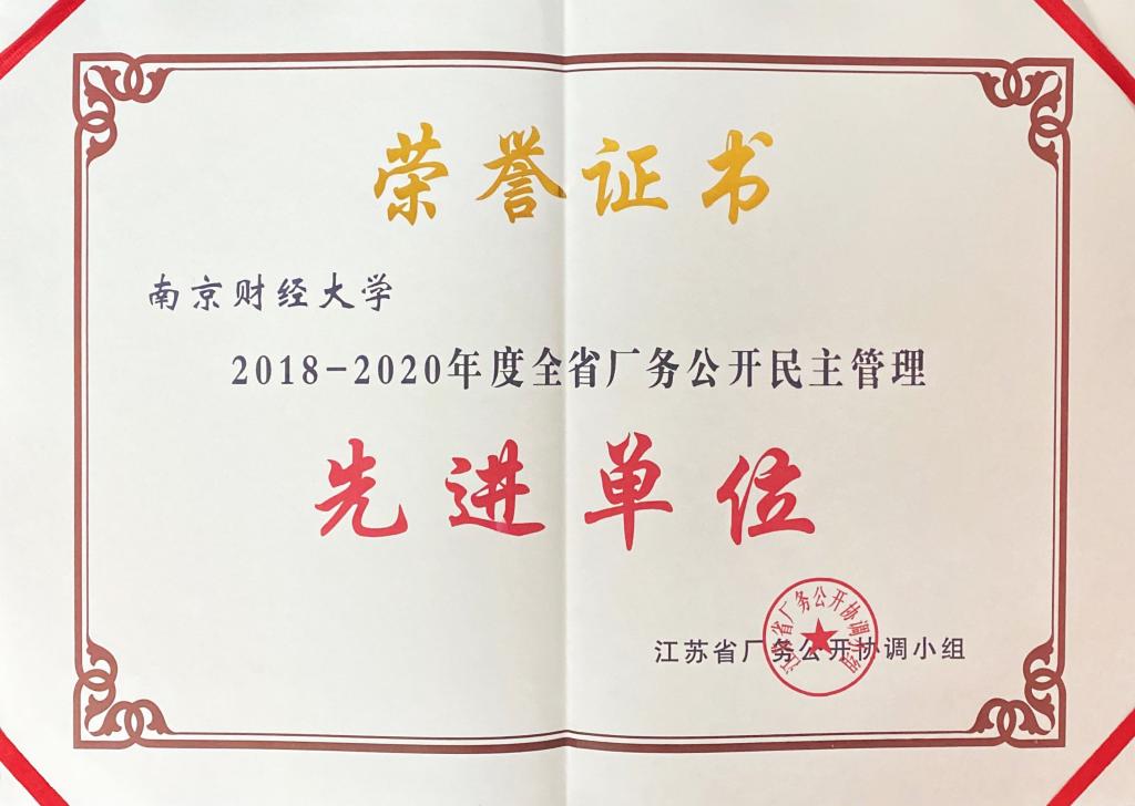 近日,江苏省厂务公开协调小组下发了《关于表彰2018-2020年度全省厂务公开民主管理先进单位的决定》(苏厂开办[2020]1号),表彰了一批在厂务公开民主管理中发挥了积极作用的先进单位,bat365被授予“2018-2020年度江苏省厂务公开民主管理先进单位”称号,这是对bat365多年来校务公开、民主管理水平和成效的充分肯定和认可。