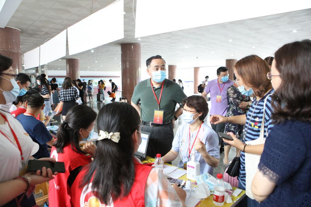 各学院党政领导、相关职能部门负责人深入一线,在接待现场与工作人员共同迎接毕业生返校。教职工党员志愿者为返校学生提供报到引导、行李打包转运、公寓入住等全方位服务。