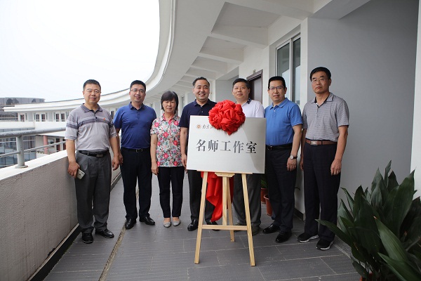 程永波校长和教学名师代表王庚教授为名师工作室揭牌。