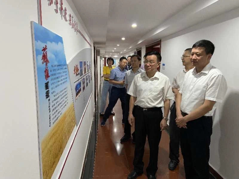 7月6日,省粮食和物资储备局党组书记、局长夏春胜,校党委书记张利民到苏粮硅谷科研创新平台、苏粮文化科普教育基地调研与指导。省粮食和物资储备局安全仓储与科技处处长韩志春,江苏粮食交易市场中心高巍主任陪同调研。