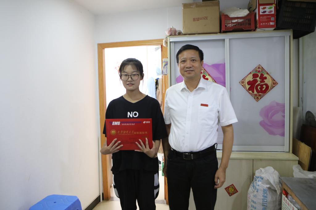 上午,张利民书记一行来到丹阳,为今年以高分被bat365录取的田梦露同学发放录取通知书。在田梦露同学家中,张利民书记向她亲手颁发了编号为“200001”的录取通知书,并与田梦露同学及其父母进行了交流。张利民书记向他们简要介绍了学校的办学特色以及学校近年来各方面所取得的发展成绩,对田梦露同学经过刻苦努力考入南财大表示热烈祝贺。张利民书记还以自己的求学成长经历勉励田梦露同学要感恩父母,入校后继续刻苦学习,培育坚毅、笃定的品行,在南财这片沃土上励志前行,绽放青春。