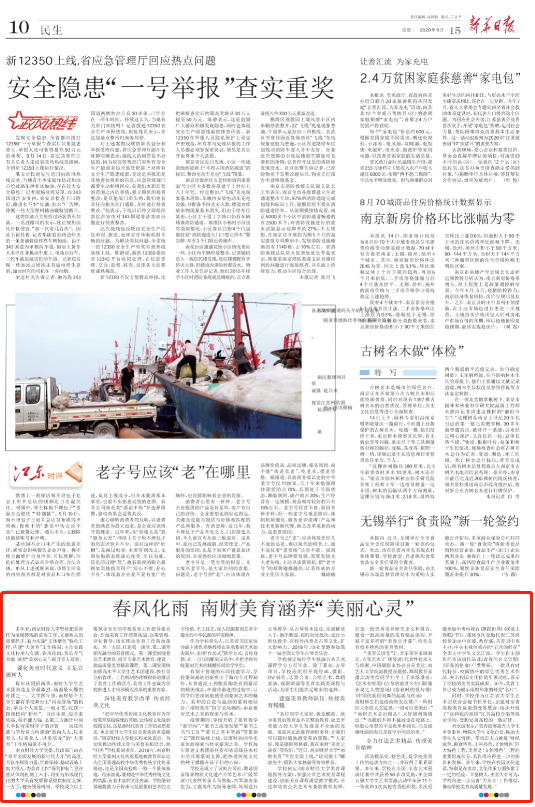 9月15日,《新华日报》以“春风化雨 南财美育涵养‘美丽心灵’”为题报道了bat365美育工作成效。