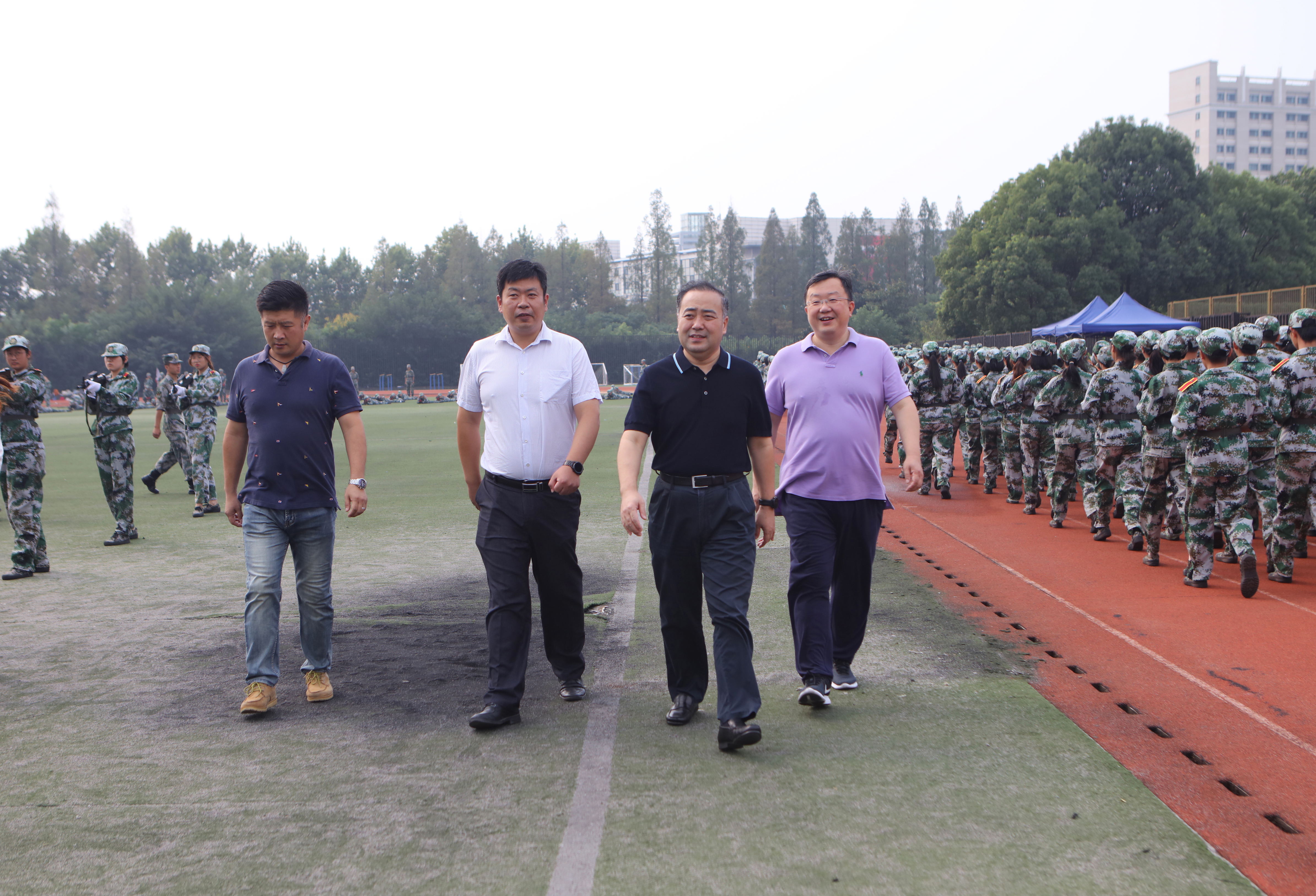 9月21日-22日,校党委书记张利民,校长程永波,校党委常委、副校长李群分别在相关职能部门负责人的陪同下来到仙林校区西苑操场,看望慰问承训的临汾旅教官及参训学生,了解2020级新生军训情况。