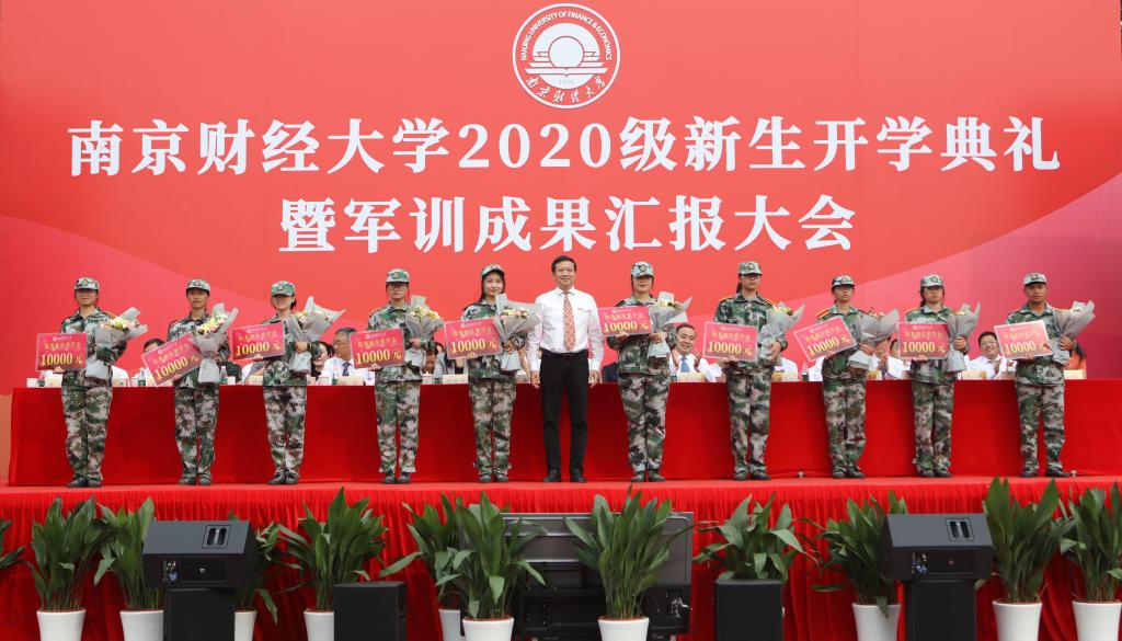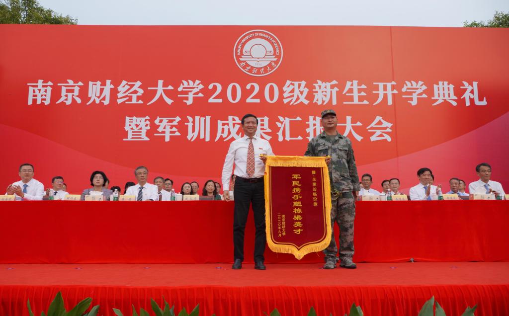 军训科目表演结束后,李群副校长宣读了《关于表彰2020级新生军训“先进集体”和“先进个人”的决定》,校领导为获奖集体和个人代表颁奖。