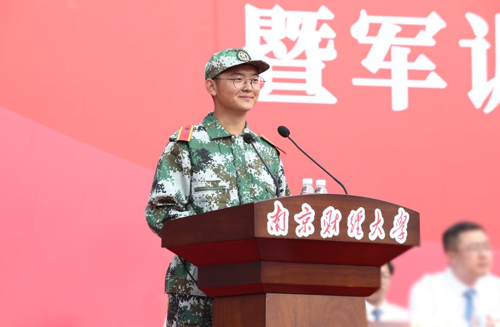 在校生代表、2019级会计专业研究生王欣月发言。她希望学弟学妹们明确目标,砥砺前行,展后浪之风采,书写属于自己的南财故事。新生代表、工商2003班张文璨发言,并带领所有新生进行了以青春为名义的宣誓。