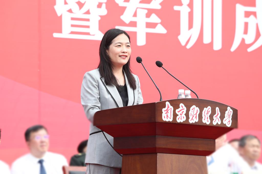嘉宾代表、bat365优质生源基地——江苏省溧阳中学校长周冬英发言。她希望每一位新生都能在大学舞台上成为“最佳主角”,拥有属于自己的精彩。让南财成为人生的福地,让自己成为南财最耀眼的光。