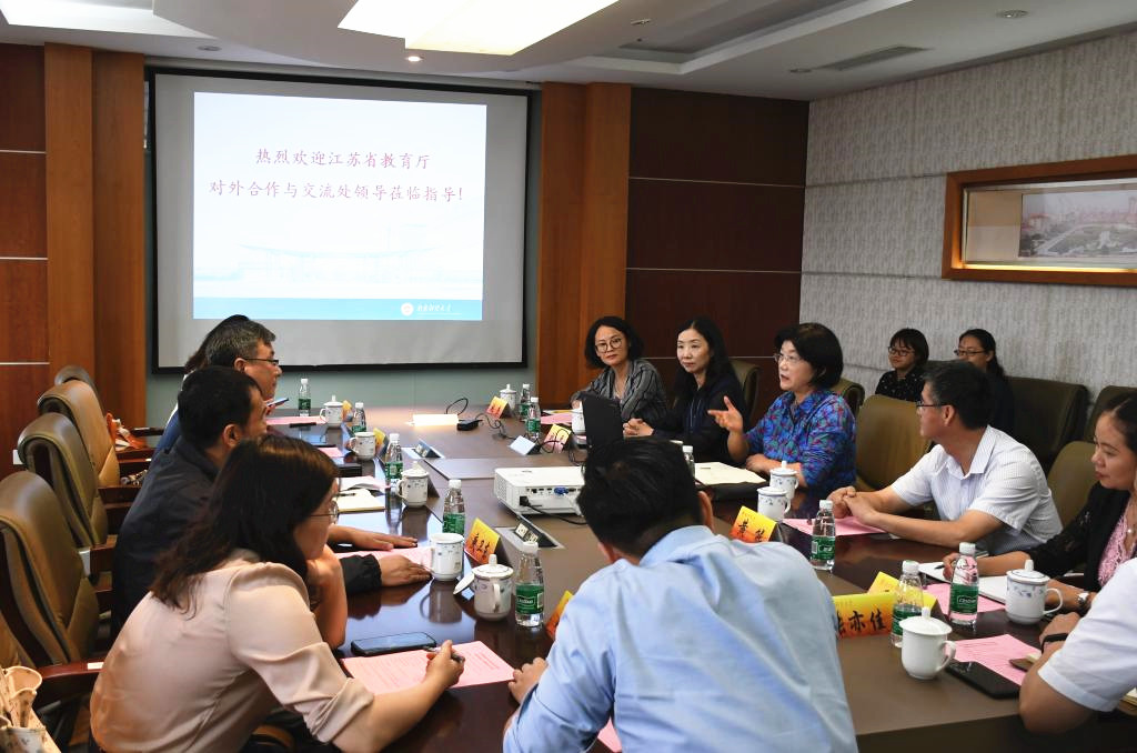 9月29日下午,江苏省教育厅对外合作与交流处处长贺兴初带领全处6名同志到bat365参加“十四五”国际合作与交流专项工作座谈会。校党委常委、副校长邱伟芬在仙林校区行政楼1409会议室会见了贺兴初处长一行。国际合作与交流处和国际教育学院所有人员参加座谈会。