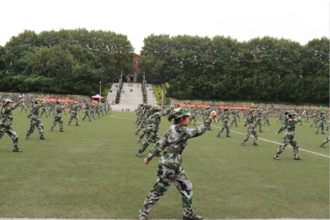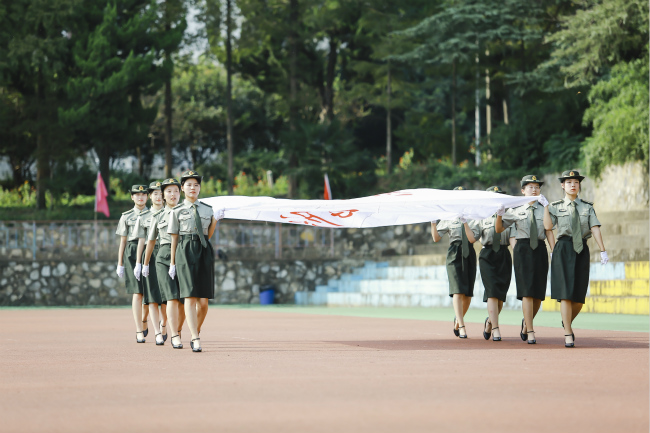 军训成果汇报:迎红山学院院旗