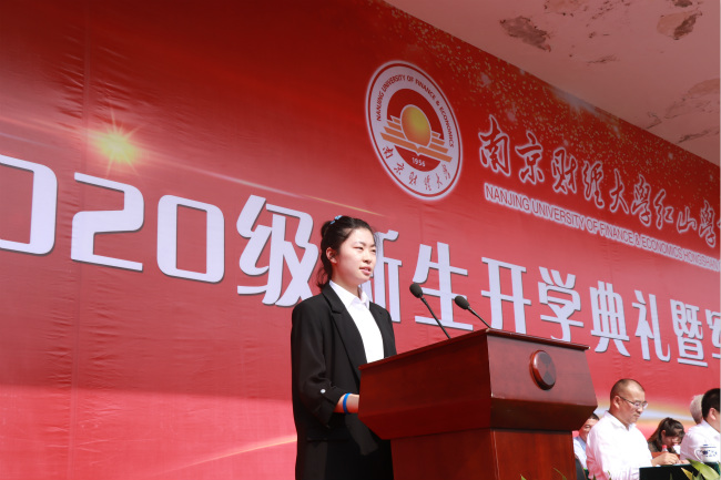 新生代表饶一名同学发言