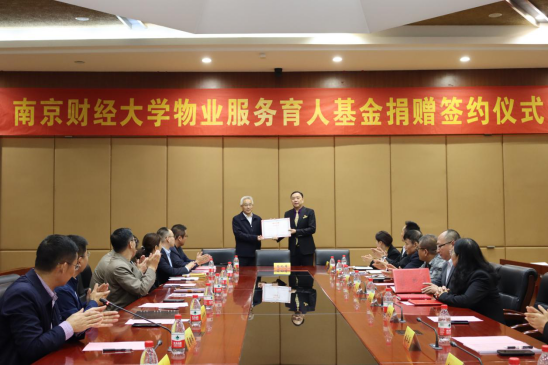 8家物业公司、教育发展基金会和后勤服务中心三方代表共同签署捐赠协议,张为付副校长代表学校向捐赠方颁发了捐赠证书。